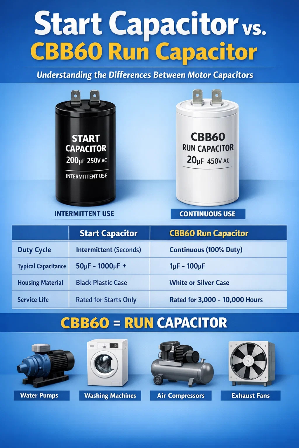 Sự khác biệt về chức năng: Tụ khởi động so với Tụ chạy CBB60